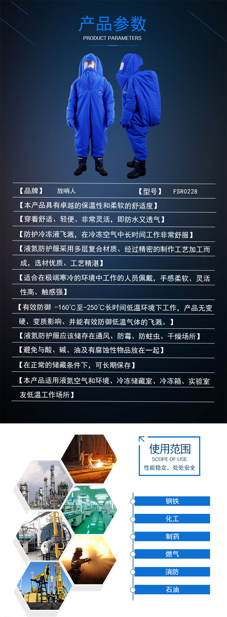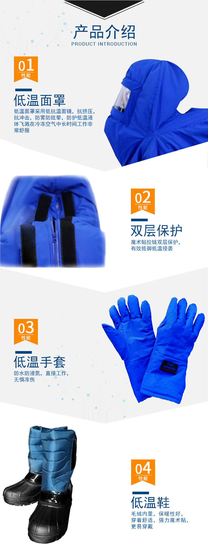 3.防護冷凍液飛濺,在冷凍空氣中長時間工作非常舒服。